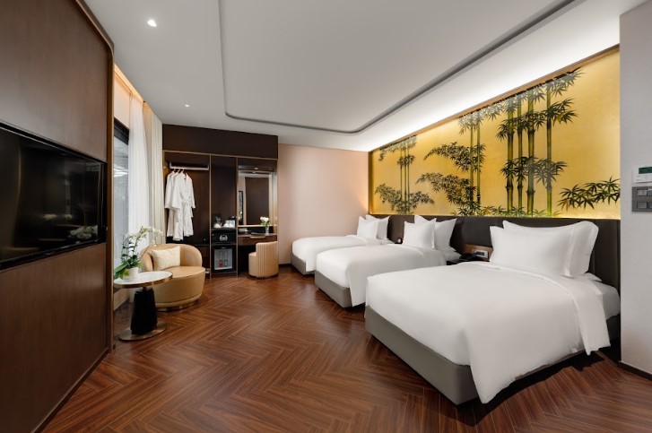 Phòng Executive trên du thuyền được thiết kế tinh tế, mang đến sự kết hợp hoàn hảo giữa tiện nghi và sự thanh lịch. Với diện tích 36m², hạng phòng này có không gian rộng rãi và ban công riêng, cho phép du khách tận hưởng tầm nhìn tuyệt đẹp ra Vịnh Hạ Long ngay từ phòng nghỉ của mình. Vị trí các phòng Executive được đặt ở vị trí gần các tiện ích khác trên du thuyền như nhà hàng hay bể bơi, đảm bảo sự thuận tiện và dễ dàng tiếp cận các dịch vụ giải trí và thư giãn.
